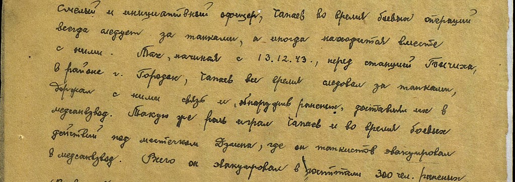 Только за 7 дней боевых действий с 6.10.44 по 13.10.44 оказал медицинскую помощь и эвакуировал с поля боя 108 раненых